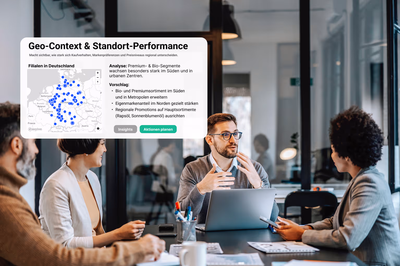 Understanding geo-context shows how buying behavior, brand preferences and price sensitivity differ by region. By linking real transaction data with location information, regional patterns become visible — for example, where organic products overperform, discount brands dominate or premium assortments see particularly strong demand.